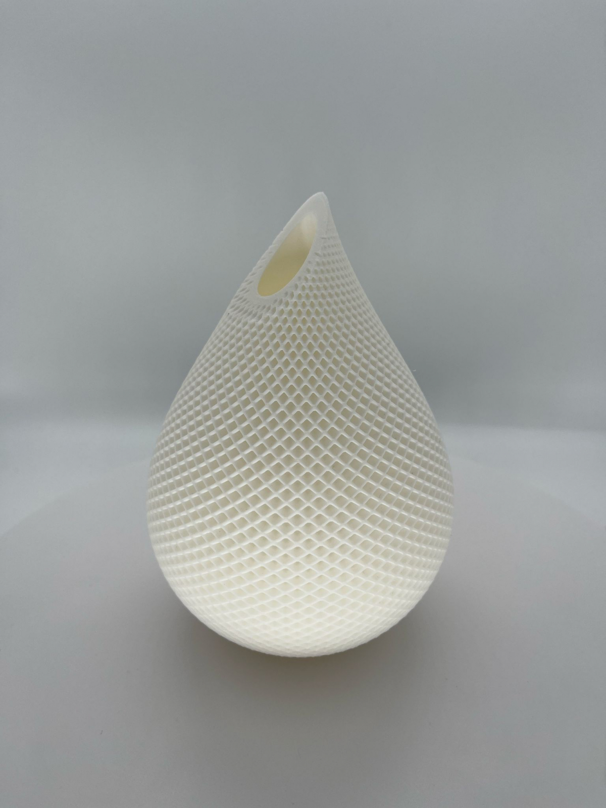 Această vază decorativă este realizată prin imprimare 3D din material PLA, un plastic biodegradabil, ușor și durabil. Cu un design modern și o suprafață albă mată, vaza adaugă un accent minimalist și elegant oricărui spațiu interior.